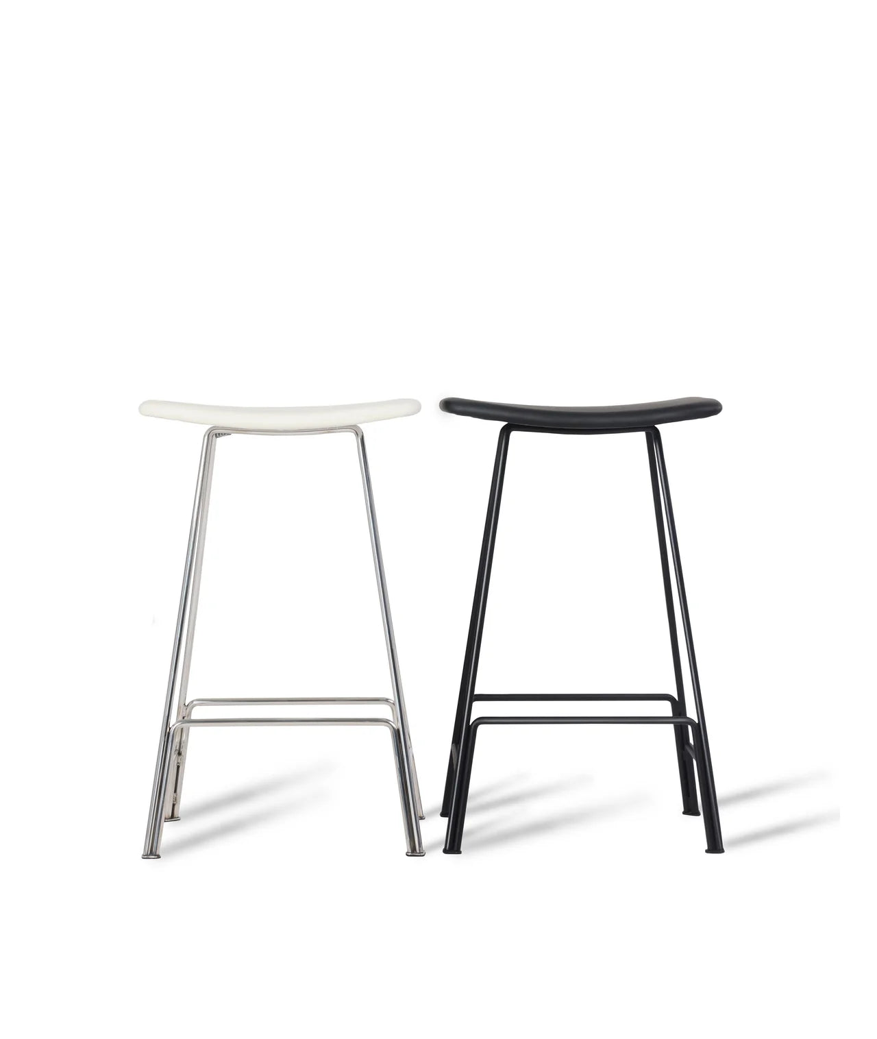 The Canaria leather-seated counter stool is available in all black with black powder-coated steel. It's light-weight and perfect for small spaces as it tucks away neatly under the countertop. These stools are built so well that we recommend them for restaurant and bar use.