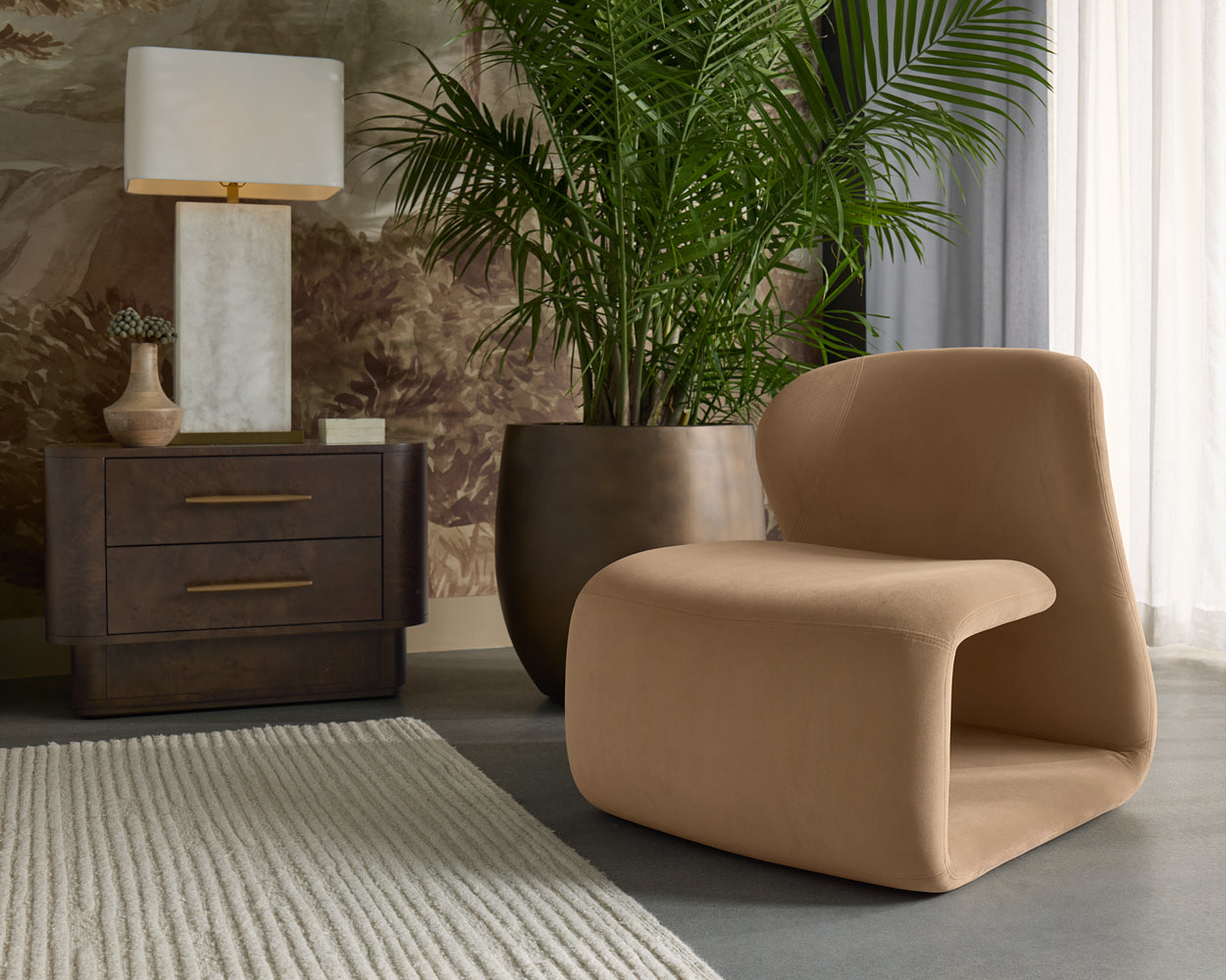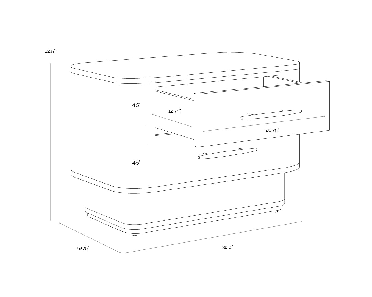 The Ezekiel Nightstand celebrates form and function with a heightened sense of luxury. Maple burl veneer offers timeless beauty with its dynamic wood grain swirls and deep rich tones. Two soft-close drawers with brushed gold stainless steel handles provide convenient storage space.