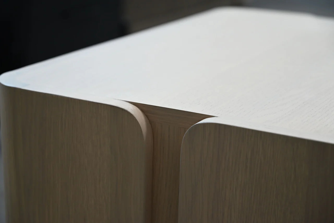 The Nori Bedroom collection features two styles in white oak, the perfect marriage of simplicity and style. All Nori pieces, including the beds, have black powder-coated steel legs that extend over the wood, giving it a chic, modern look. The full collection offers a nightstand, bed, chest, and dresser. Choose between a natural or blackened white oak wood finish.