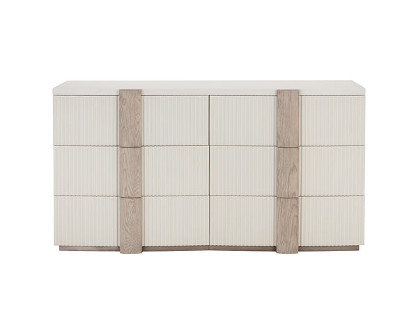Spacious and stylish, the Venetta Dresser will elevate any bedroom space. Smooth light oak wood handles beautifully complement the cream base and reeded drawers.