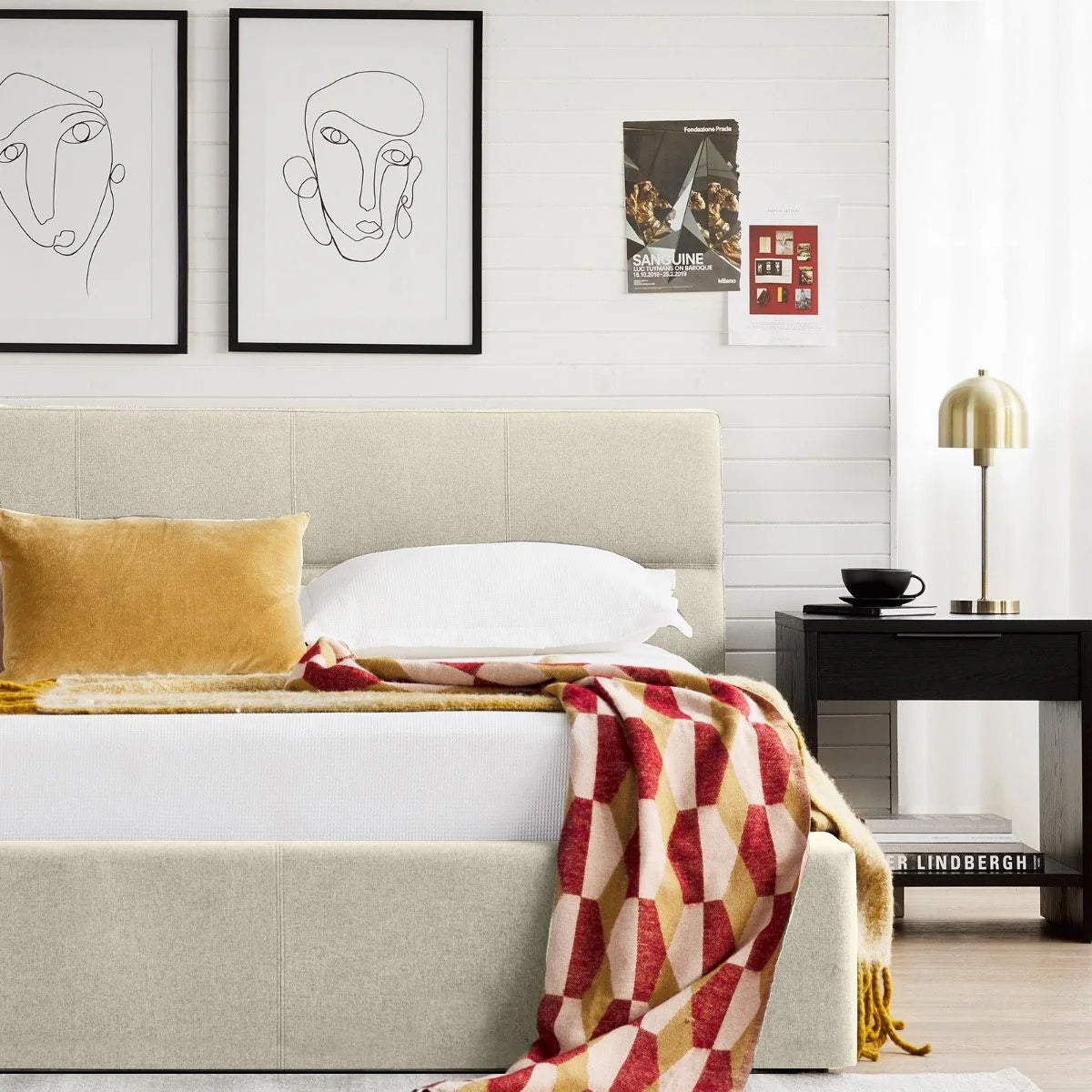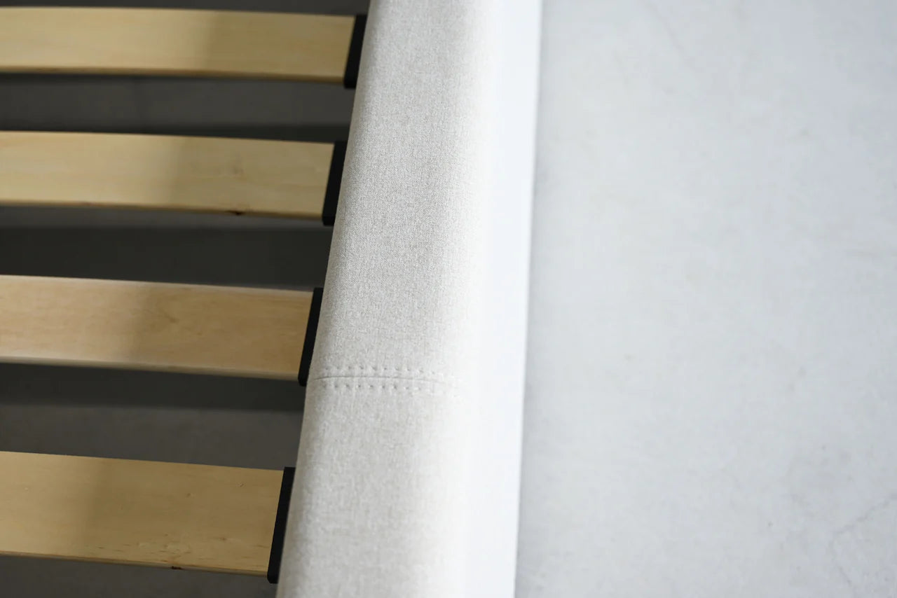 The Reve Bed has a beautifully blind-tufted detail which adorns the headboard. The bed is upholstered in a chic ivory color which can be easily matched with other home furnishings. The low profile of the bed gives it a modern, minimalist feel, while the tufting adds a touch of classic elegance. The solid wood frame ensures durability and stability, promising years of restful sleep. Available in king and queen sizes.