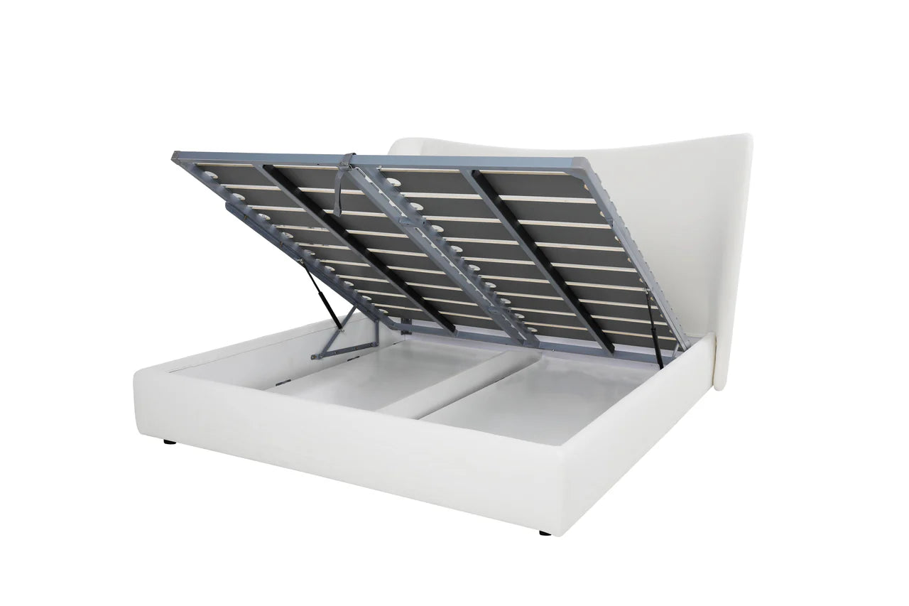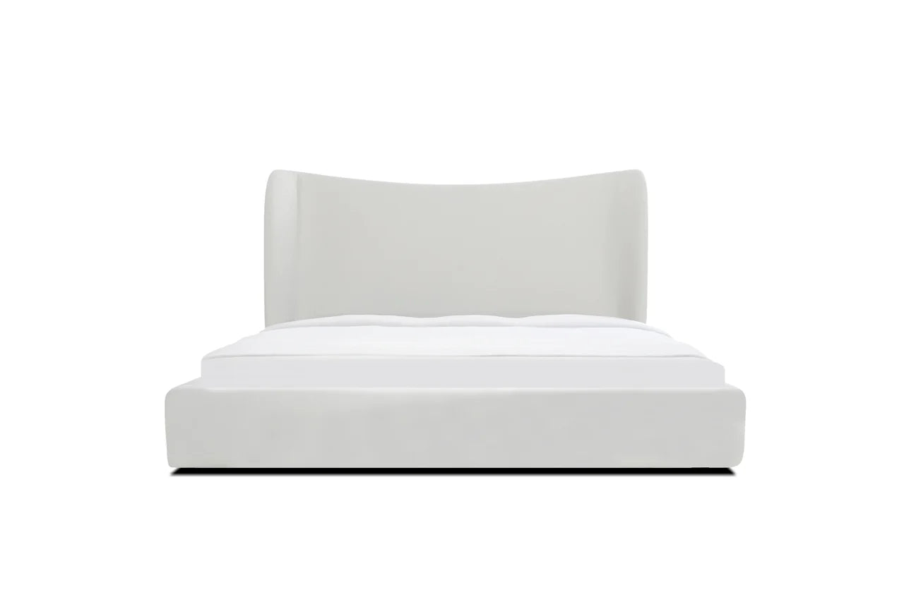 Indulge in the embrace of the Rowe Storage Bed, where every night feels like a getaway in your own private sanctuary. The unique grand headboard—with its gentle curve—envelops you into a cocoon of comfort. Upholstered in an airy, linen-cotton blend, this bed offers ample storage space beneath.