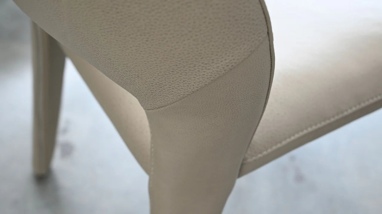 The Bosco Dining Chair comes in two luxurious leather finishes: Palomino Sauvage and Taupe Pebbled Leather, allowing for versatile styling options in any dining setting. Designed to be contract-grade, these chairs are robust and durable, making them an excellent choice for restaurants and other commercial environments where quality and longevity are essential.