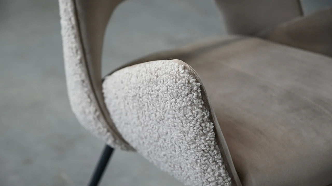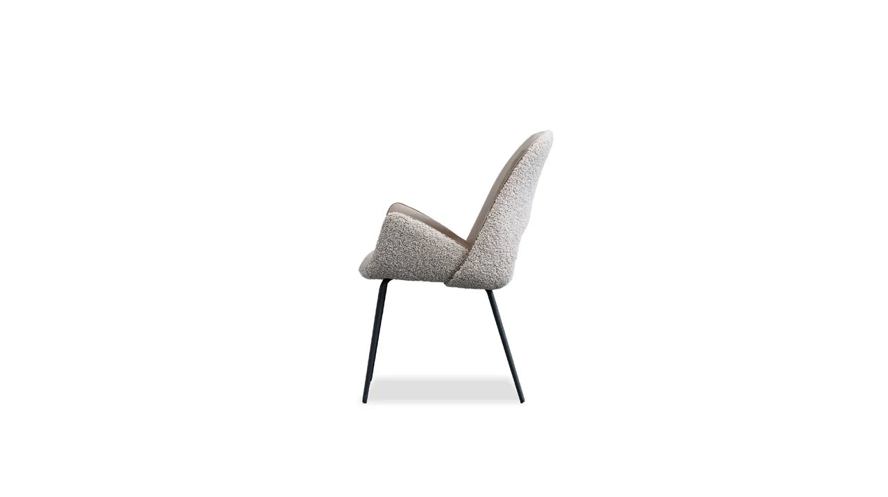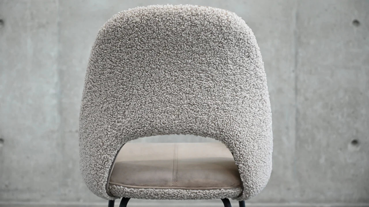 The Dolce Dining Chair features a compact design with a cozy feel. The half-arm design hugs you in and the plush backrest and seat design allow you to sit comfortably for hours. Dolce features a soft ultrasuede fabric inner and a teddy-like outer for a snug look.