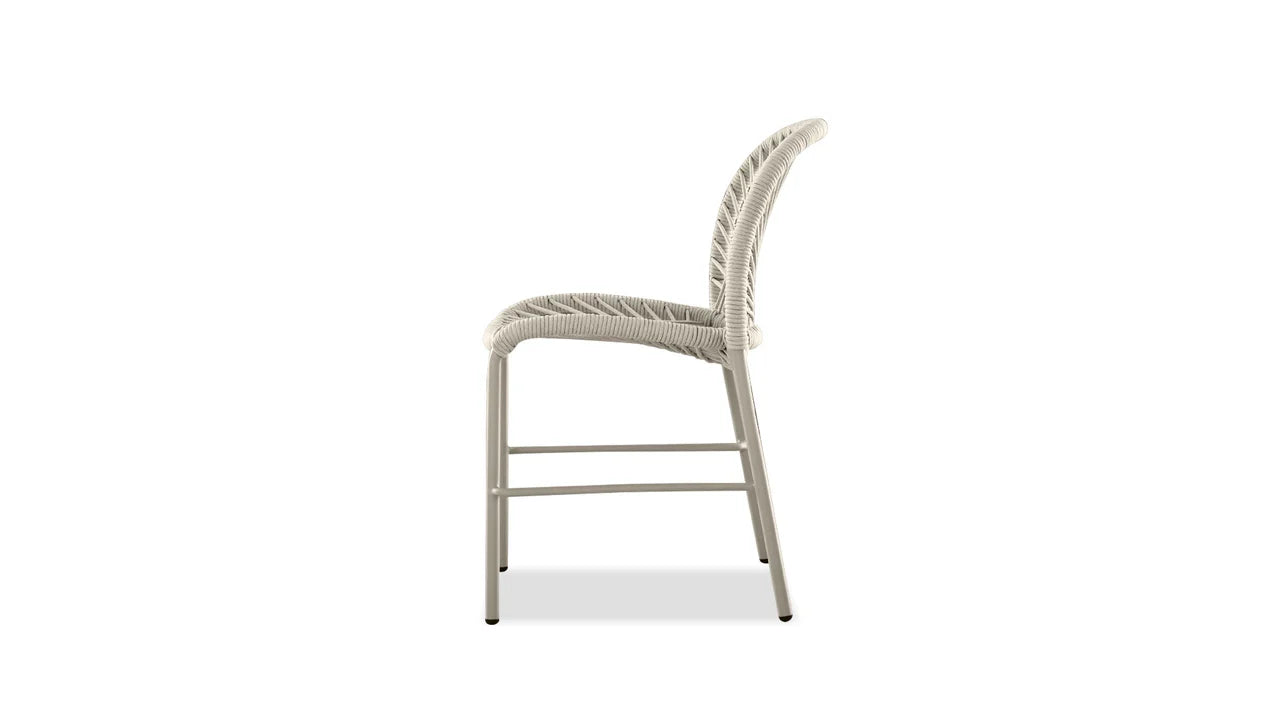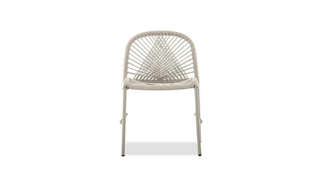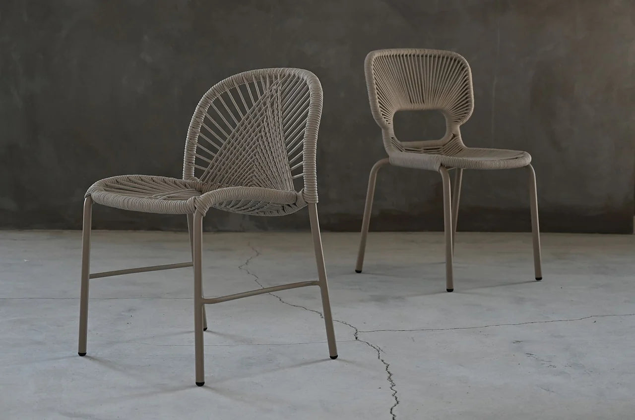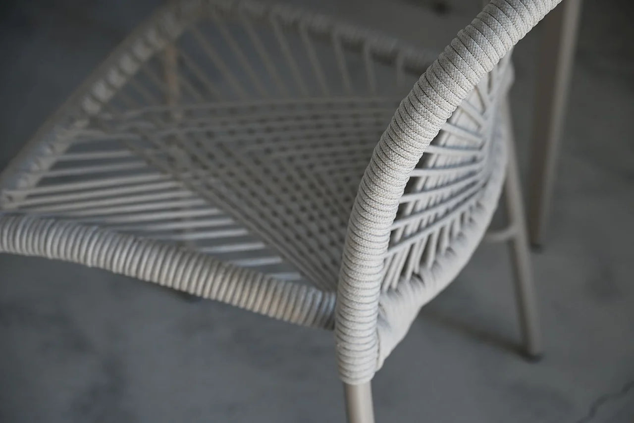 The Kamari Chair is designed to be easily stacked for convenient storage. This chair is lightweight and suitable for use both indoors and outdoors. Its seat and back are intricately woven, providing a combination of comfort and aesthetic appeal. The Kamari chair comes in a stylish taupe color that can be easily matched with different tables.