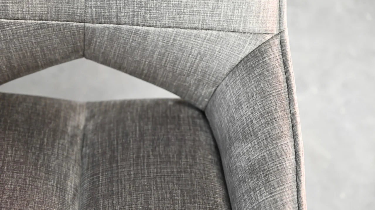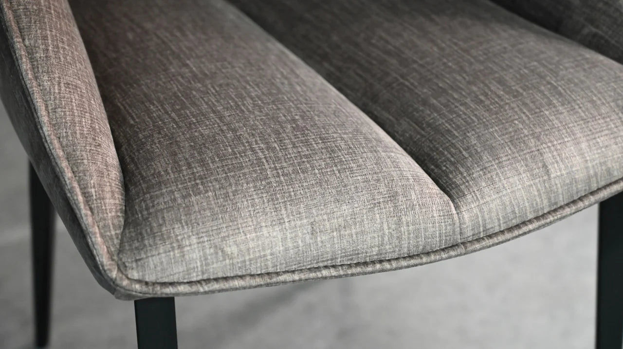 The Nova Dining Chair features a compact design with a cozy feel. The angled side design hugs you in while the plush backrest and seat design allow you to sit comfortably for hours. Nova features a soft chenille crosshatch in a chic umber color with black steel legs.