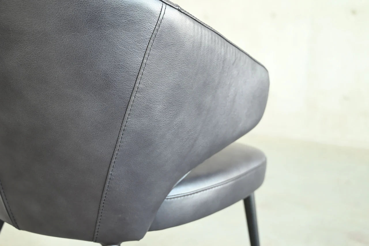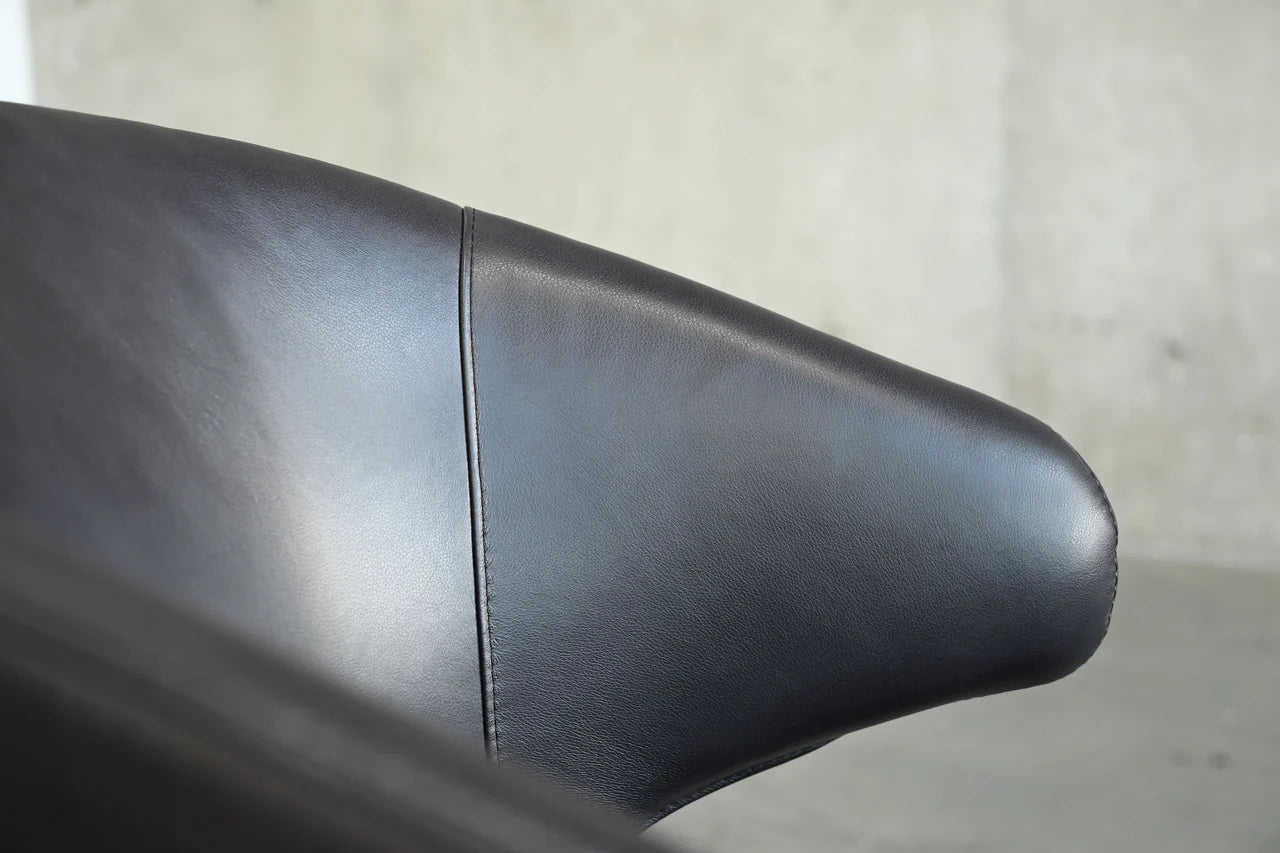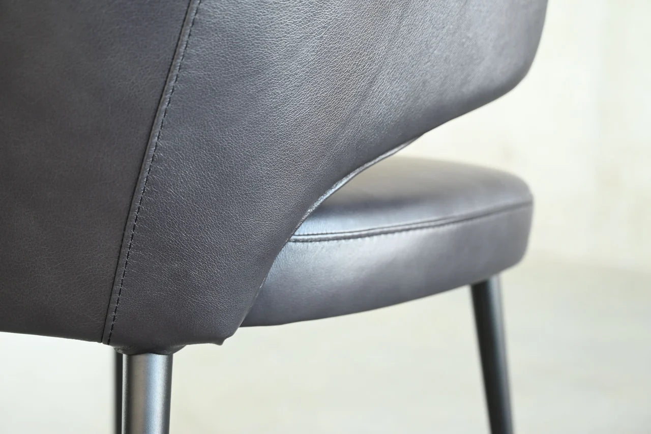 The Stretto Dining Chair is upholstered in a glossy black buttery leather, offering both style and comfort. Its hug-like backrest design features a curve, creating a comfortable sitting environment. With matte black powder-coated steel legs, the Stretto is an excellent choice for commercial projects. Durable and chic, it meets the demands of both residential and commercial environments. Available in a counter stool option for a matching look.