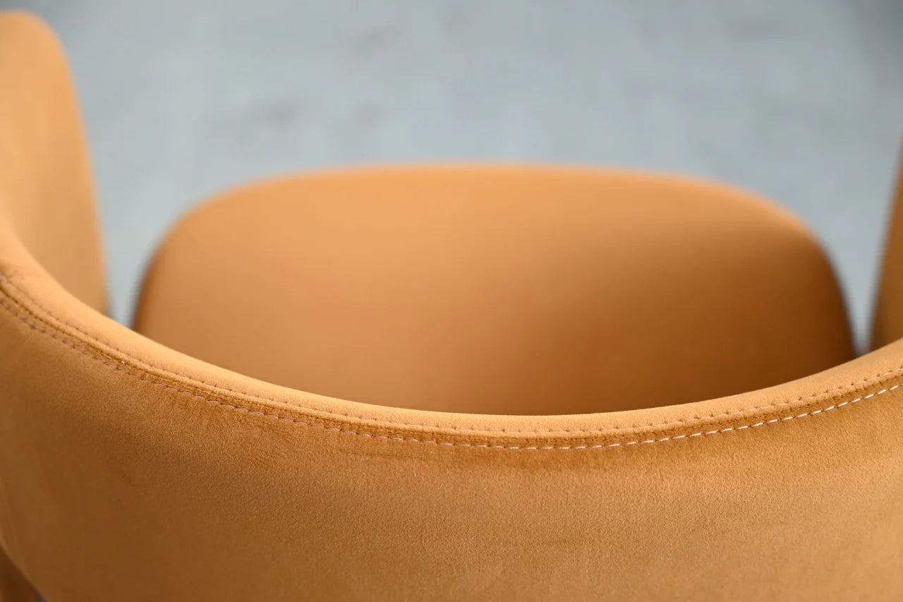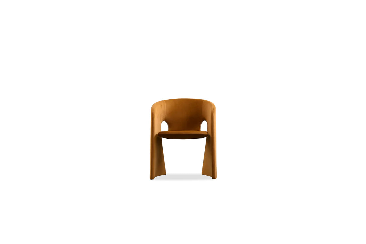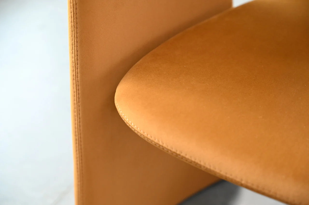 The Vera Dining Chair boasts a unique floating seat design, upholstered in luxurious velvet. Available in crow black and fennel seed, this ultra-modern chair is fully upholstered.