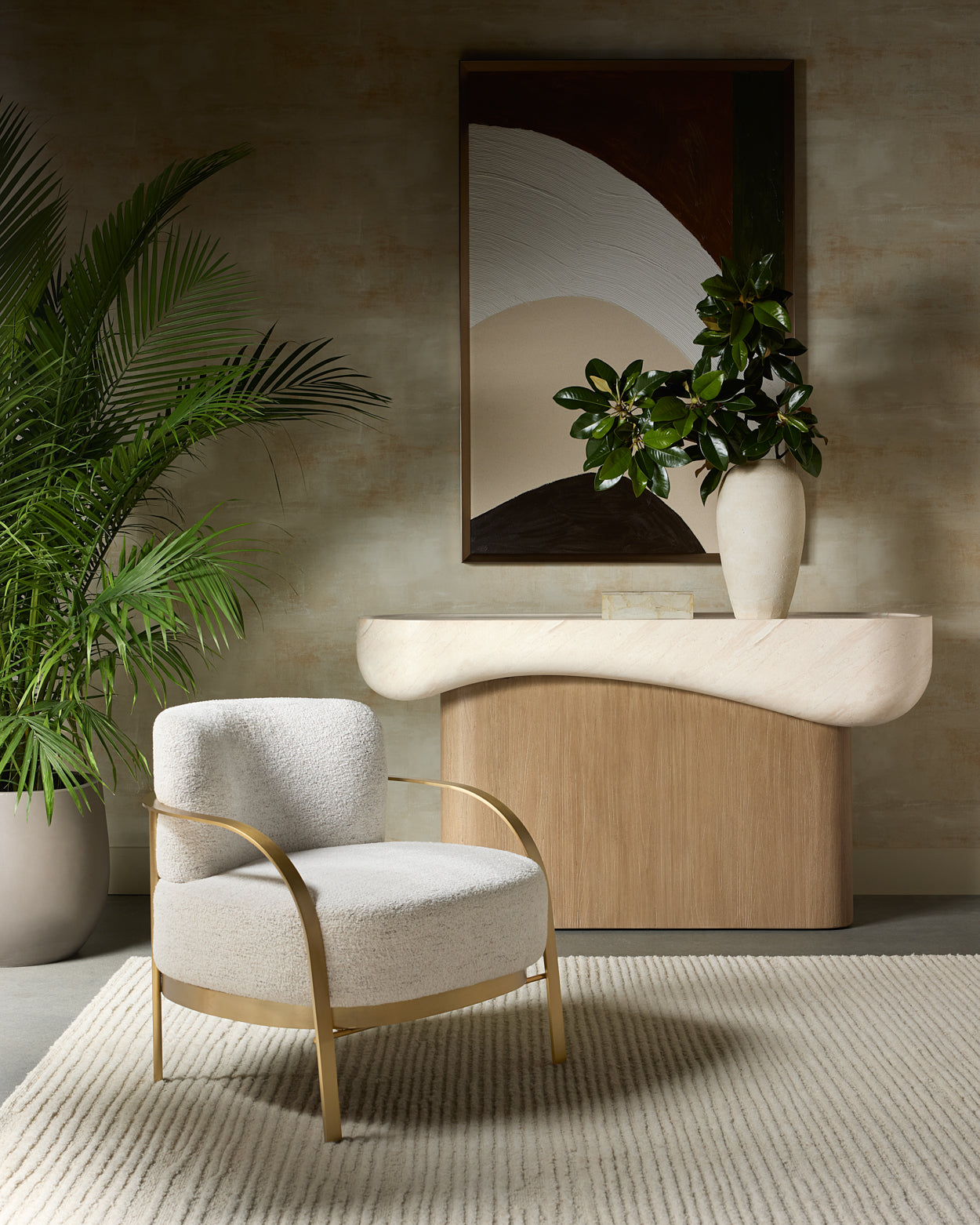 Hand-painted with a linen fabric cutout, Road Trip is an abstract reflection of the earthy tones found in nature. Expressed in browns, creams, and green, this work interacts with shape and texture to embody the new neutrals palette. This stunning and rich work can stand alone or be paired with the coordinating art pieces in its collection.