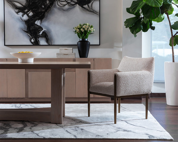 The Olea Lounge Chair is the masterful union of mid-century technique and contemporary ease. Versatile enough to accompany any space and boasting a charming silhouette with bronze powder-coated steel legs that emphasize the plush texture of santa cruz oatmeal fabric.