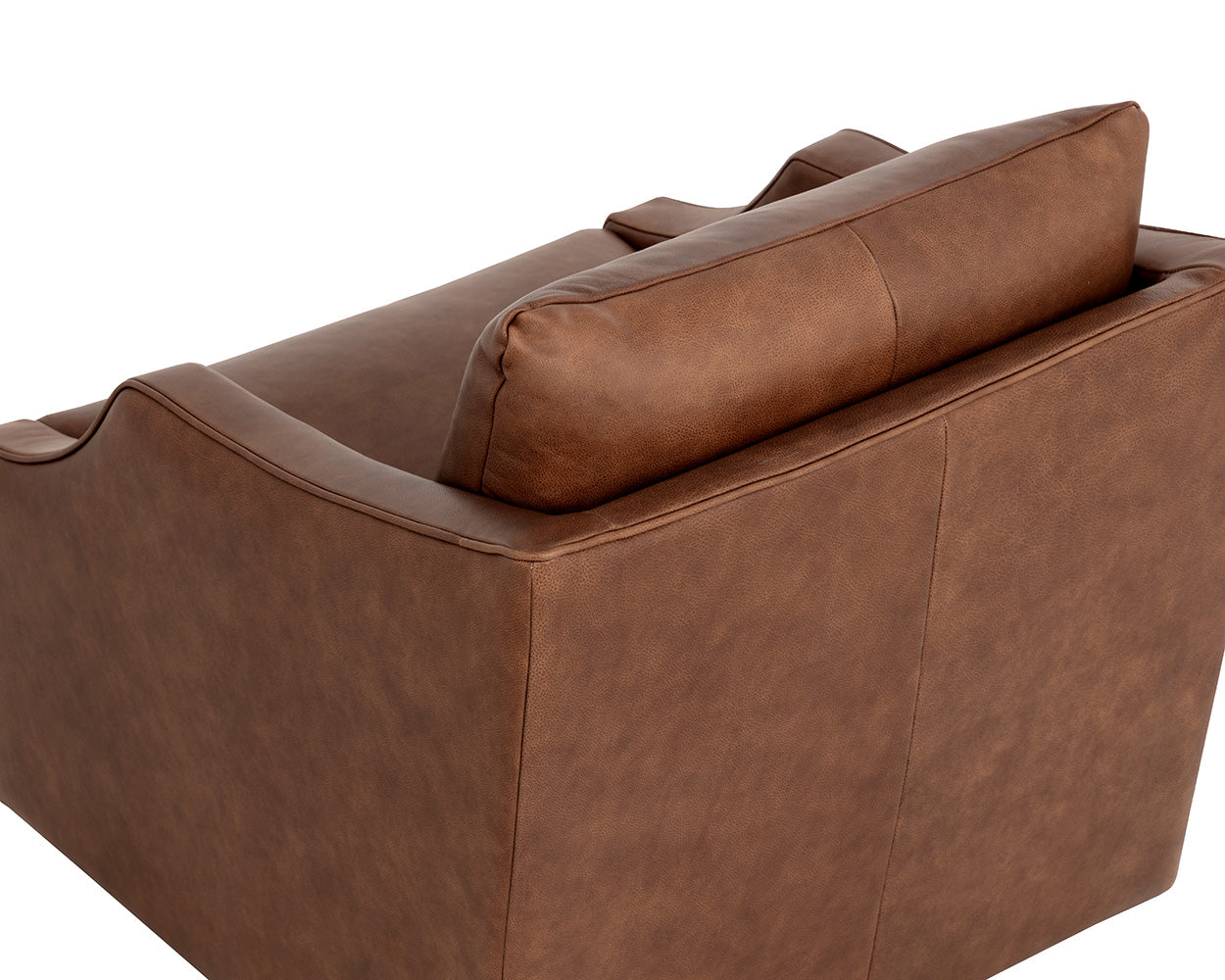 The Orwell Swivel Lounge Chair is a compelling display of modern simplicity. Expertly crafted from Italian bovine leather with clean lines that flow easily. From its chiseled profile to its sloped arms, this lounge chair is an achievement of high style and restraint.