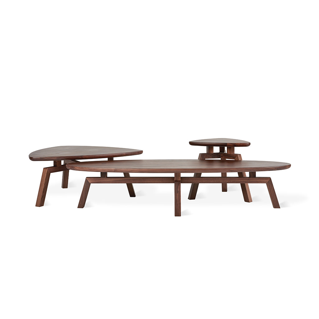 Channeling classic mid-century style with the relaxed ambiance of 1970’s Modernism, the Solana Triangular Coffee Table showcases solid wood craftsmanship and sculptural beauty. The organic curves of the tabletop rest upon angular legs, creating a pleasing contrast unified by the warmth of the smooth wood grain.