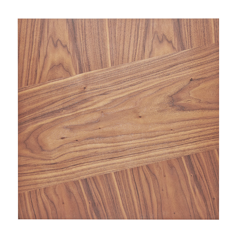 The Tobias End Table is a minimalist, geometric accent piece well suited for modern spaces. The square top features a dynamic arrangement of walnut wood grain panels, which rest on a slim, solid steel base. A subtle reveal along the table edge creates the illusion of a floating top.