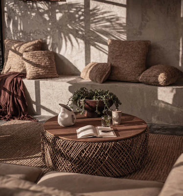Conventional techniques combined with an uncomplicated and rustic fashion. This piece is made from natural and sustainably sourced materials. The base is handwoven from abaca fibers and the top is made of reclaimed teak. This table can be turned into a storage basket by removing the top. Multifunctional and eco-friendly, it brings high quality island-inspired style to your home.