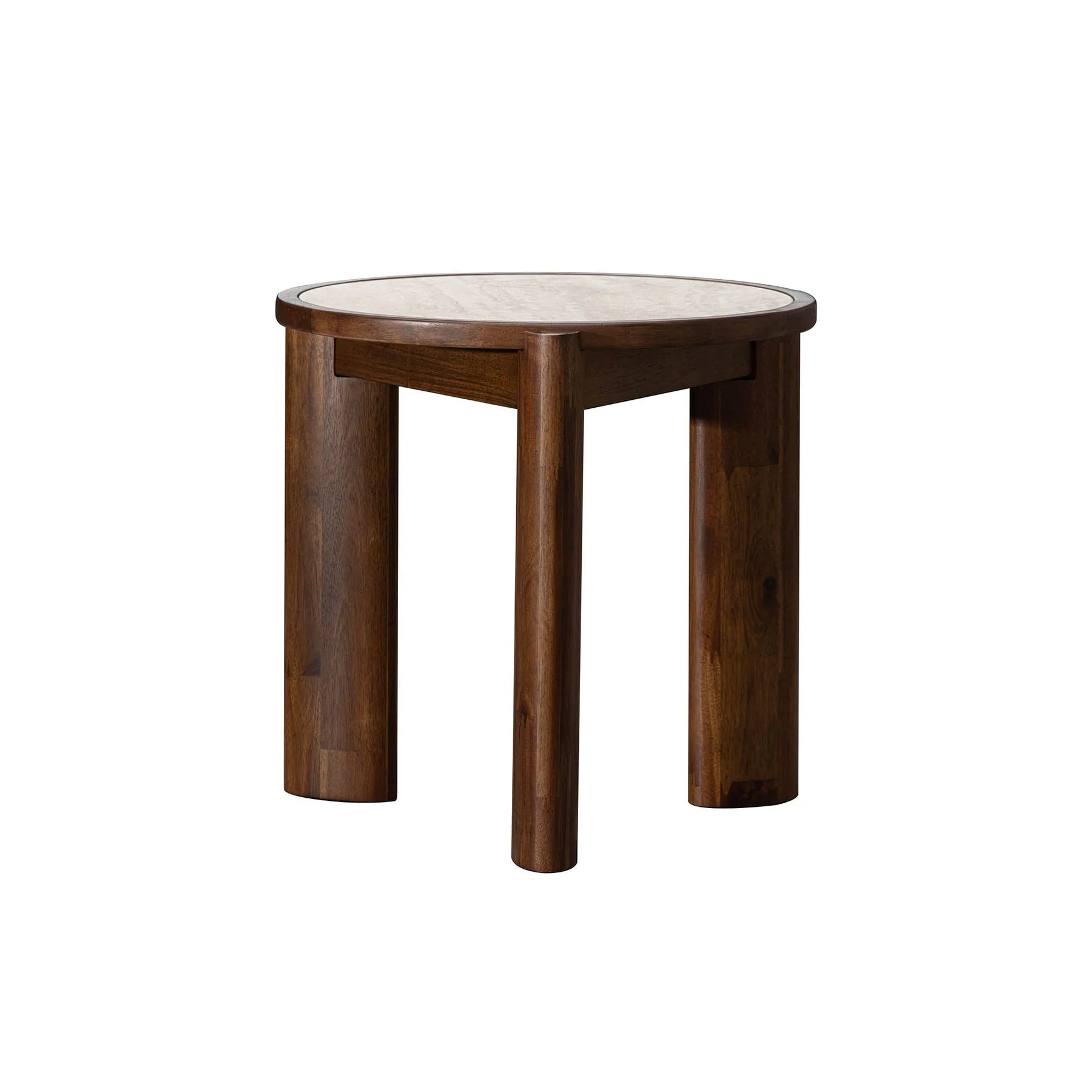 This side combines natural materials with refined design for a stylish accent piece. Its ceramic travertine top features a warm beige tone that mimics the beauty of stone while being easy to maintain. Supported by solid acacia wood legs, the table balances strength with character. The clean, rounded silhouette adds a soft, inviting touch that fits seamlessly into a variety of decor styles.
