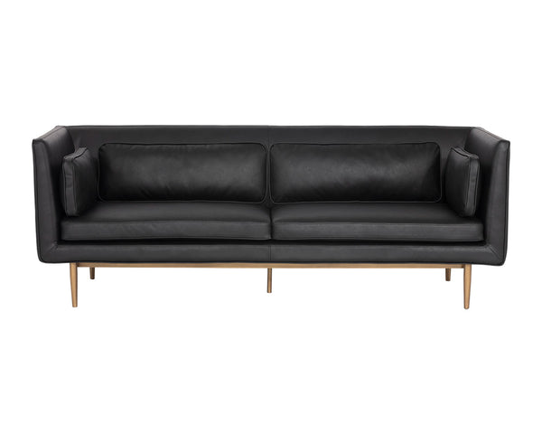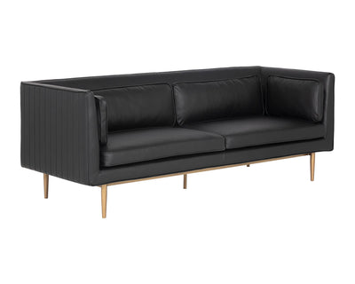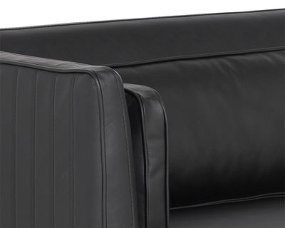 Inspire conversation while seated in this mid-century inspired sofa. Streamlined and refined, this design features a sleek seat in belfast heather grey fabric or vintage black faux leather with channel tufting on the exterior. Includes four cushions.