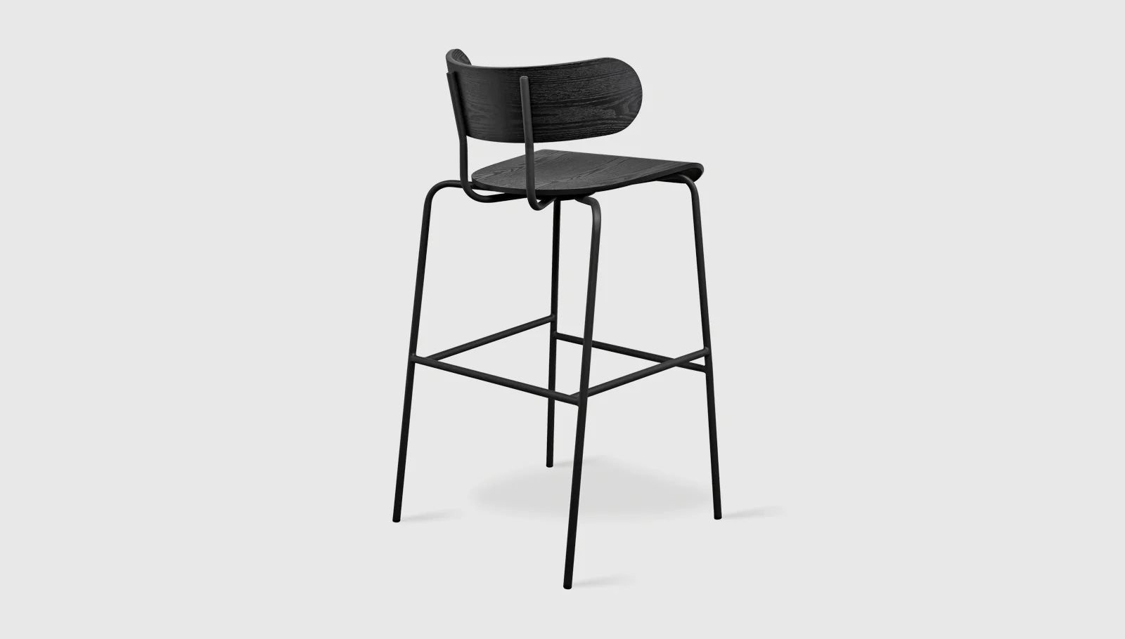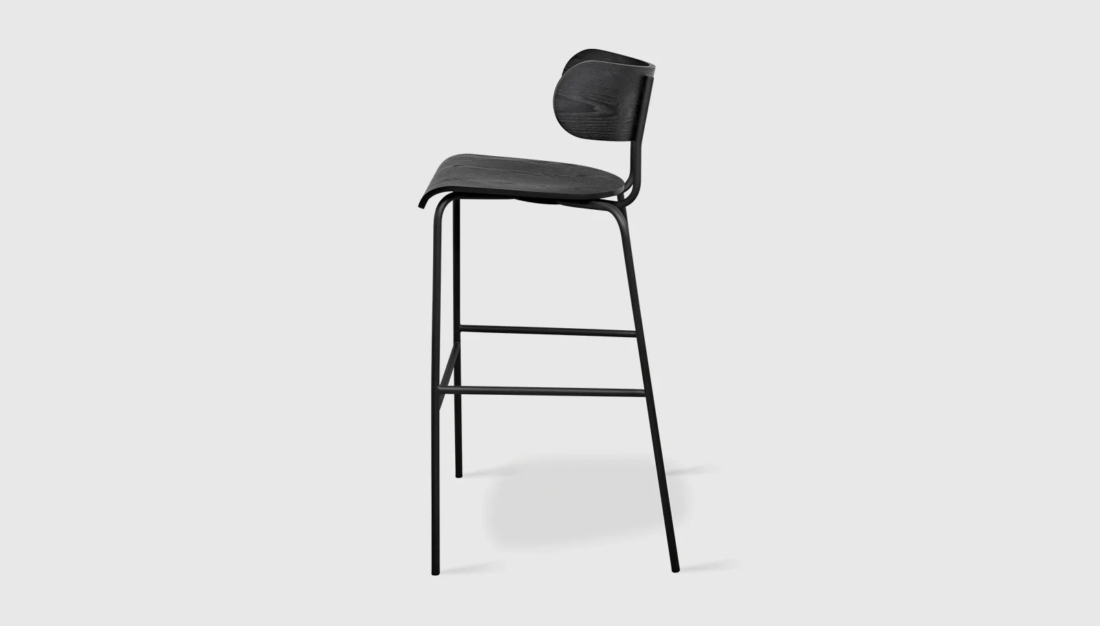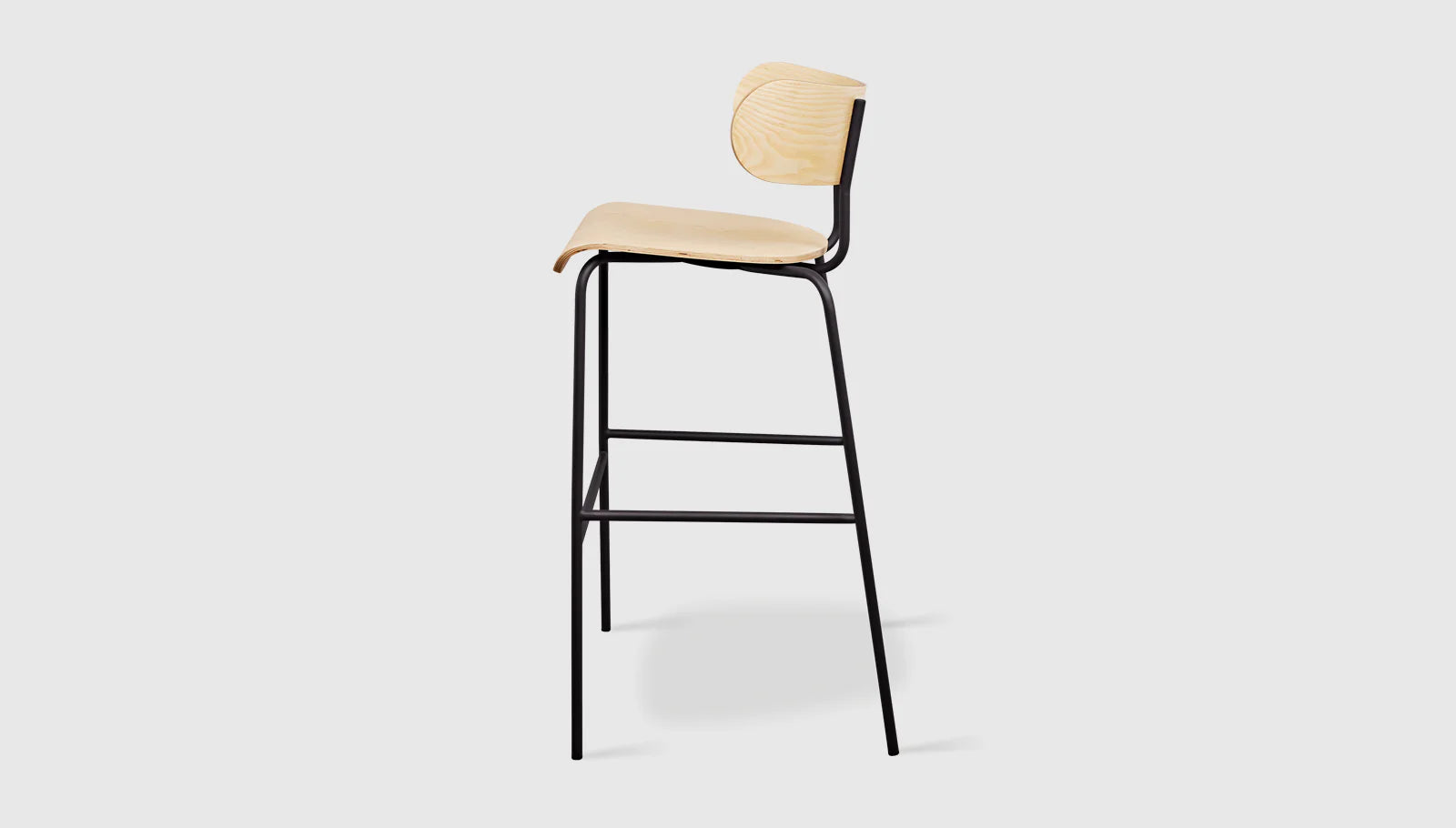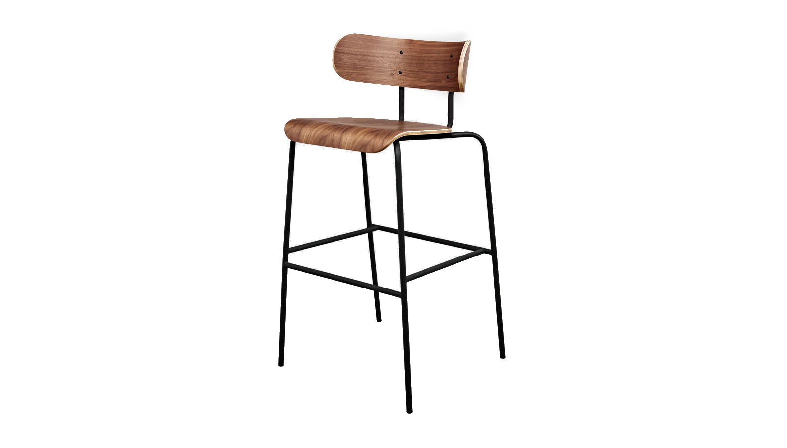 Blending a mid-century design approach with the ease of contemporary living, the Bantam Bar Stool embodies simple sophistication with a sculptural ethos that welcomes you to sit and stay awhile. Delicate steel legs support a formed-plywood seat and back that ergonomically support the body with gentle curves for all-day comfort. Sturdy, yet lightweight, this original design includes an integrated footrest for extra support.