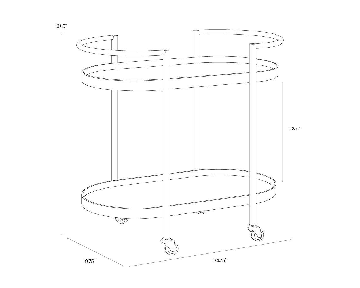 The Bartlett Bar Cart brings a glamorous addition to any dining space. Black mirrored shelves beautifully complement the antique brass frame for a classic look.