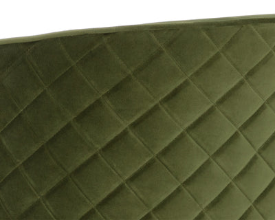 Feminine flair comes to life in this modern counter stool. Stocked in danny iceberg or meg olive fabric with elegant diamond stitching on the exterior seatback. An antique brass steel frame completes the look.