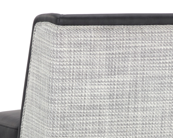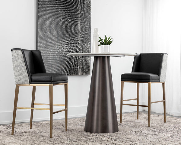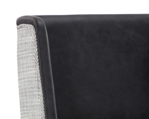 The Joplin Barstool introduces a dazzling array of textures and visual contrasts to any dining room. A stunning combination of smooth cantina black faux bonded leather and textured vera white pepper fabric adds a stylishly chic ambience that is sure to leave a lasting impression.