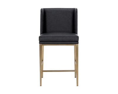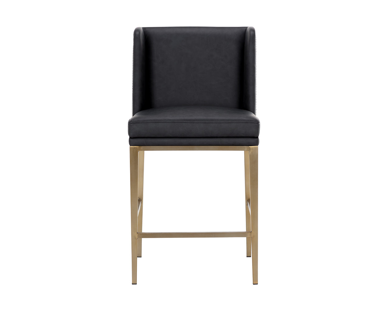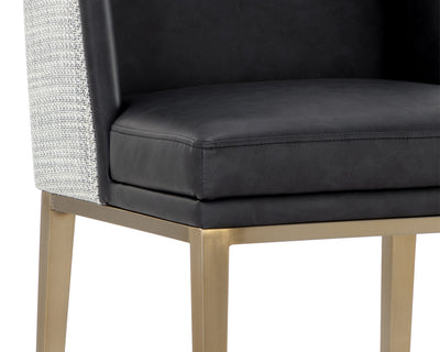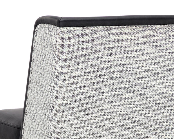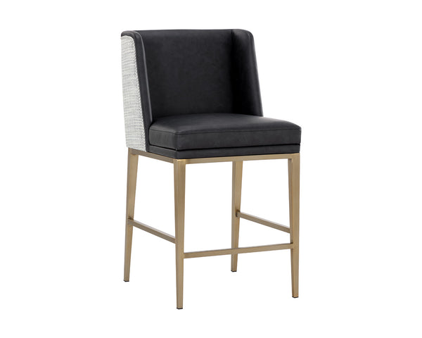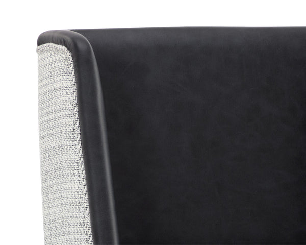 The Joplin Counter Stool introduces a dazzling array of textures and visual contrasts to any dining room. A stunning combination of smooth cantina black bonded leather and textured vera white pepper fabric adds a stylishly chic ambience that is sure to leave a lasting impression.
