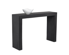 This console makes a bold statement with its clean lines and concrete construction in grey and black. Ideal for small spaces with its narrow depth. Crafted from a natural concrete mix, each piece will look different, with variations of black hues that will enhance over time.