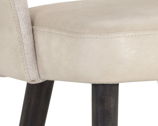 A chic barrel back counter stool with vintage influence. Crafted with a soft, velvet moss green or abbington black fabric or a bravo cream faux leather seat and exterior with a polo club muslin seatback. Finished with brown birch wood legs and antique brass caps. Suitable for various dining, kitchen and bar spaces of all sizes.
