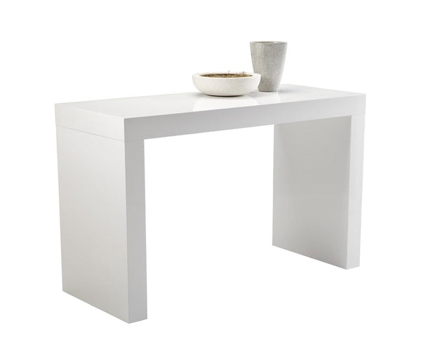 • Distinctly urban counter height table with room for two stools on each side. Now available in a stunning high gloss white finish.