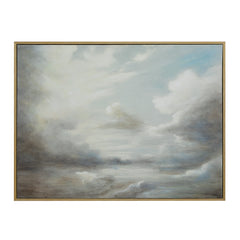 Put your design savvy on display with this stunning canvas art. Hand painted with plenty of texture, this wall art’s dreamy cloud-and-light-filled blue sky will bring interest and style to any transitional home or office.