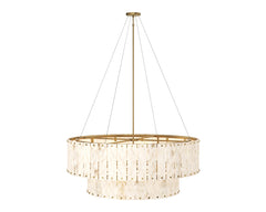 Striking and unforgettable, the Apsara Chandelier is a modern treasure that will make its presence felt in large spaces. This substantially-sized showpiece is masterfully crafted with two tiers of natural Spanish alabaster, prized for its translucency and soft cream colour. Each alabaster panel is sizeable and features unique veining that makes every chandelier one-of-a-kind.