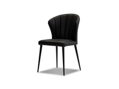 The ARIEL chair is designed to make sure you and your dinner guests are seated with the utmost in comfort. The gently curved back hugs you while you sit back and features a vertical tuft detail for extra cushion. The gently tapered legs are powder coated black.