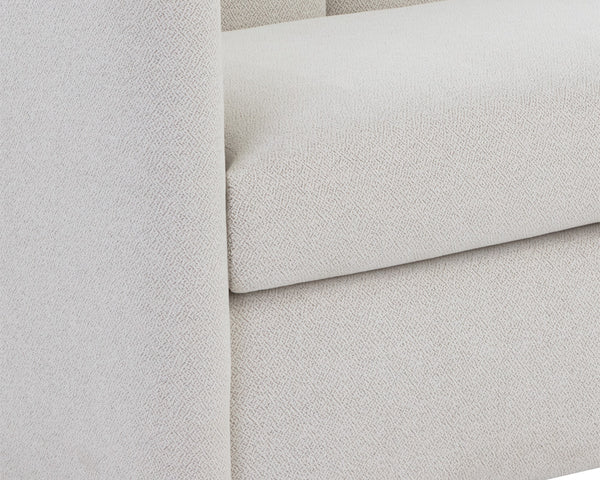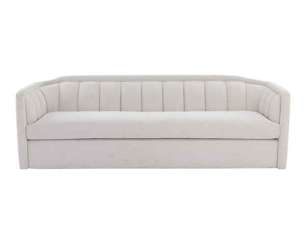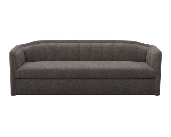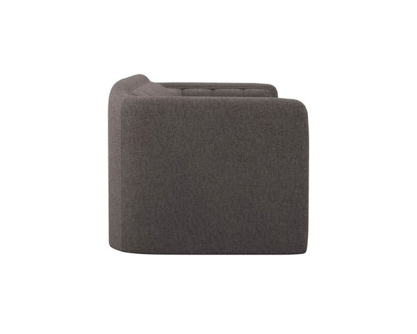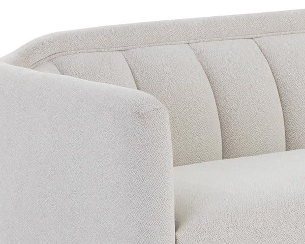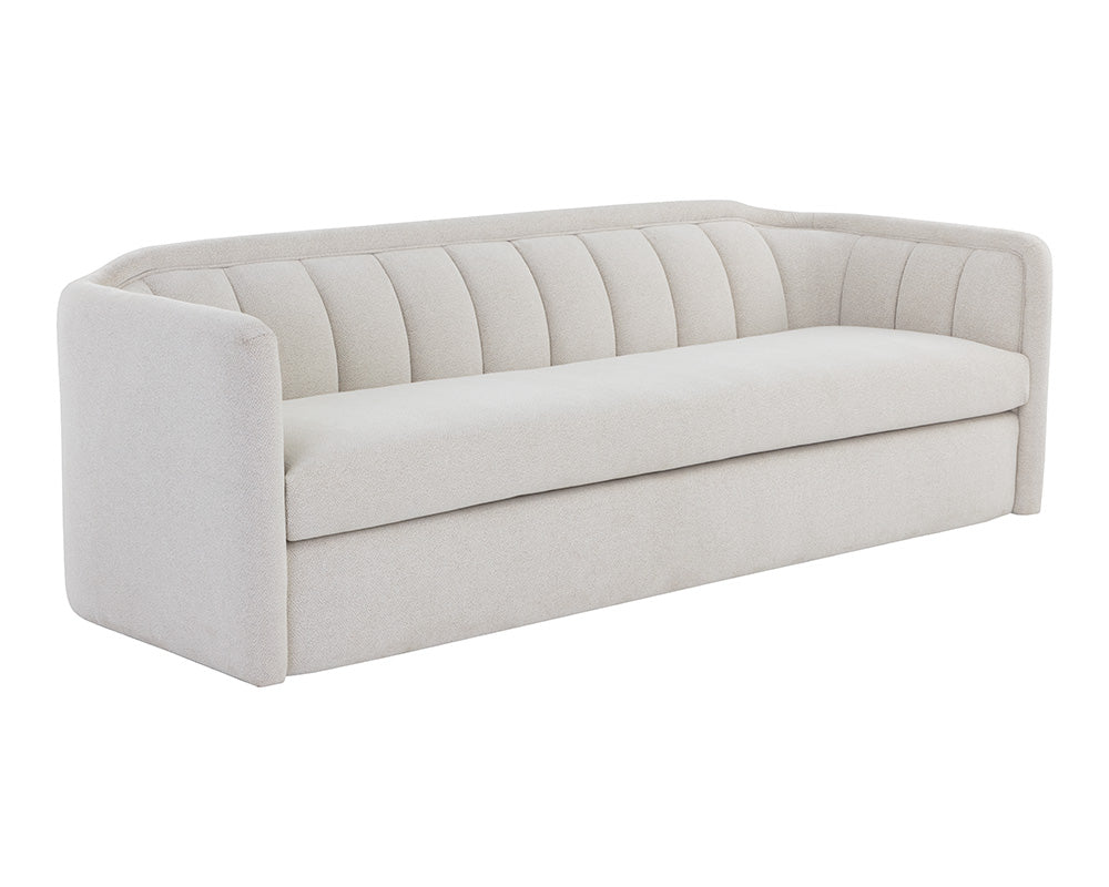 Introduce lavish comfort to any space with this contemporary sofa. Stocked in alaska hedgehog brown or dove cream fabrics. Features vertical tufting on the interior. Completed with a wooden frame and base. Coordinating swivel lounge chair also available.
