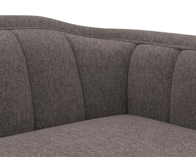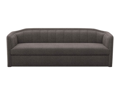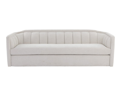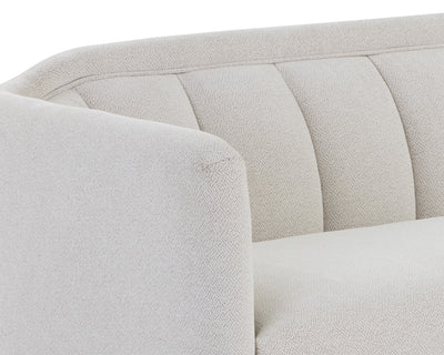 Introduce lavish comfort to any space with this contemporary sofa. Stocked in alaska hedgehog brown or dove cream fabrics. Features vertical tufting on the interior. Completed with a wooden frame and base. Coordinating swivel lounge chair also available.