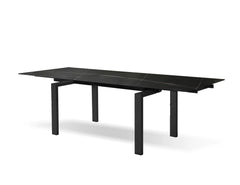 The Cantro Table has an industrial feel and look. It boasts two manually-adjustable extensions that pull from each end on durable and quiet nylon glides. With its elegant matte base, this table is perfect to seat six every day or expand and get up to ten for special occasions.