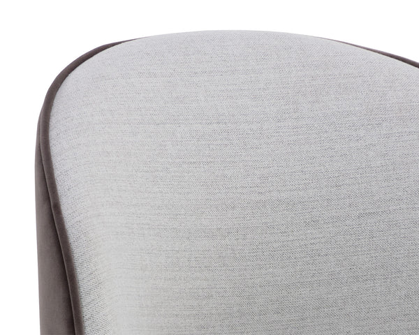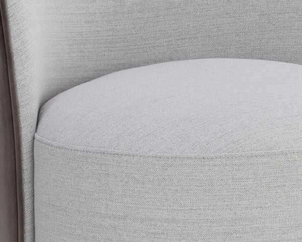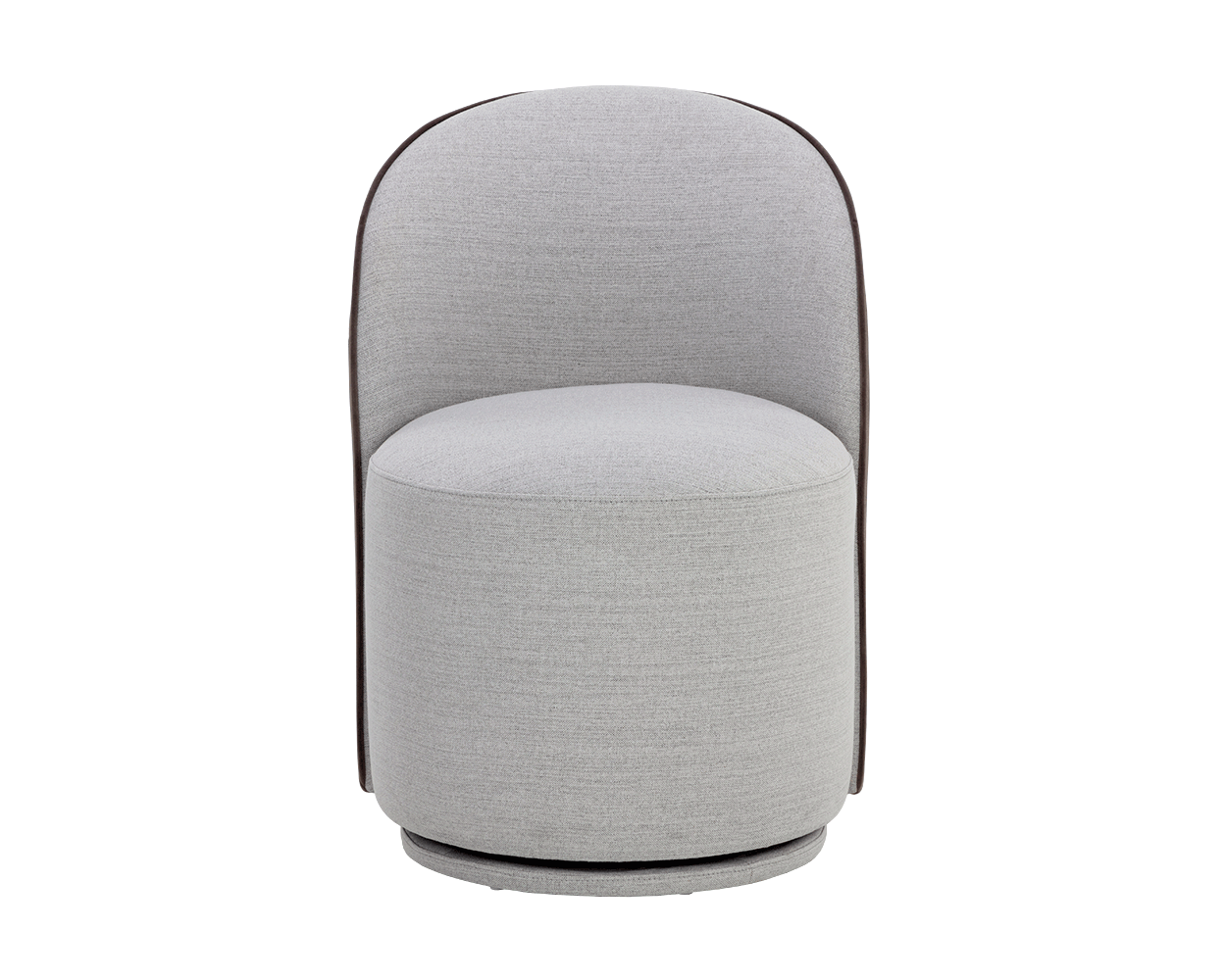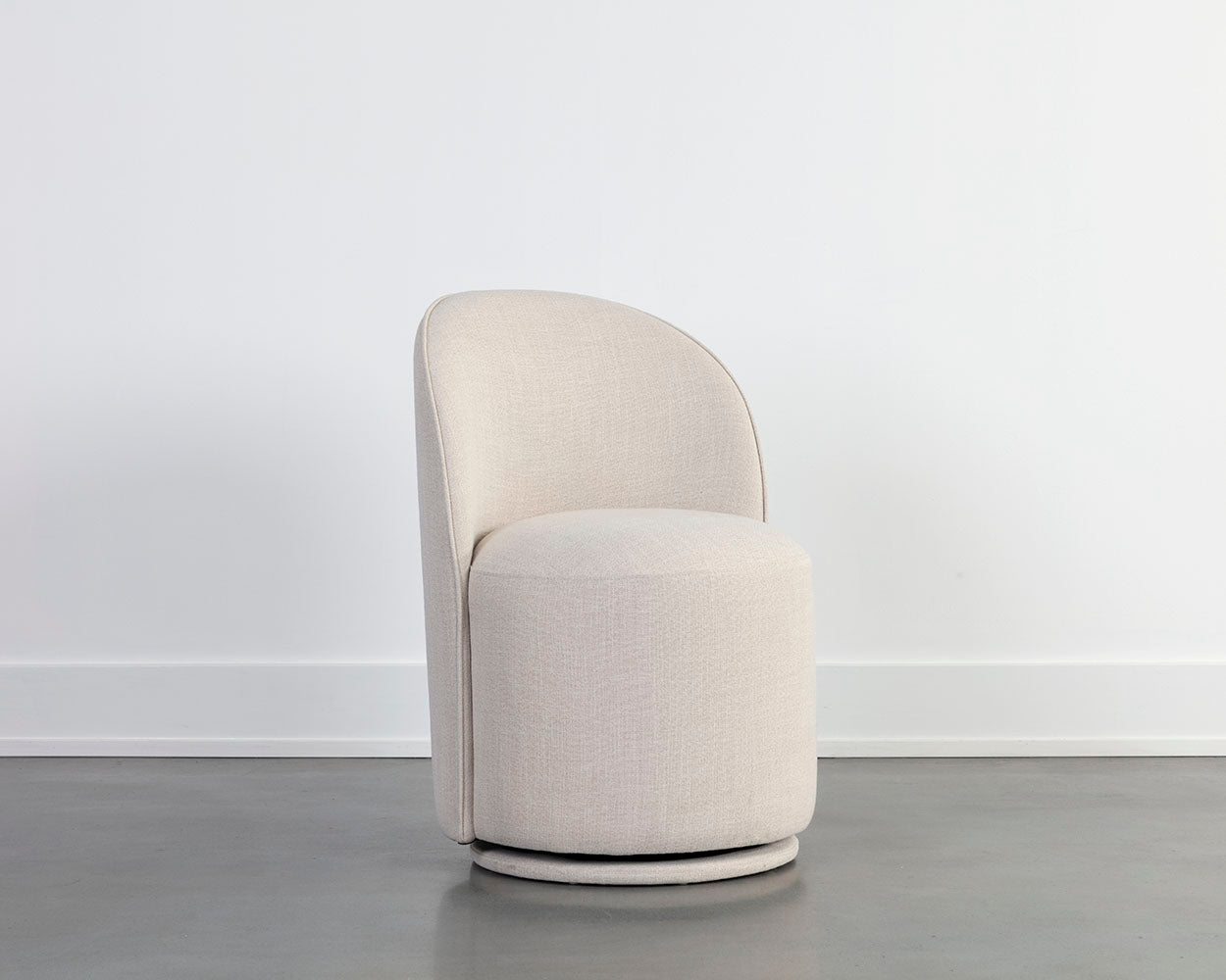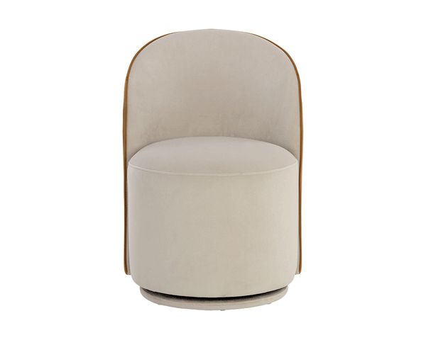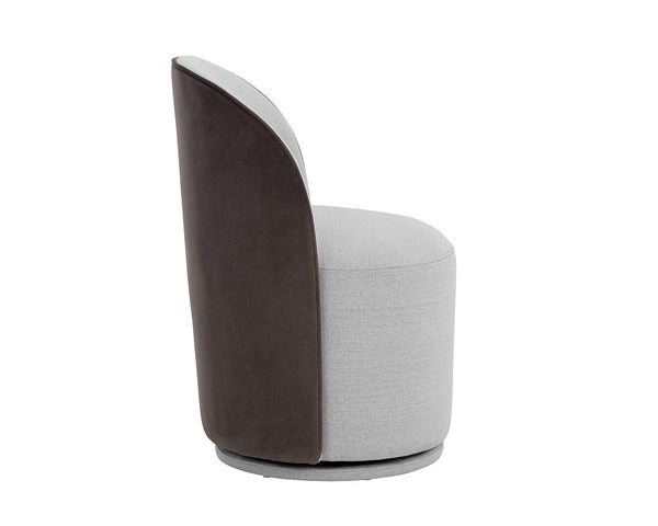 The Cavoli Swivel Dining Chair is distinguished by its curved silhouette. Fully upholstered in our belfast heather grey and meg ash, meg taupe and meg gold, or effie linen fabrics