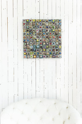 This piece is made from recycled magazines and each piece is unique in its colour patterns.