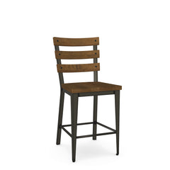 Here it is—the stool you’ve been looking for to complete your industrial design dining room. Its stark lines and slatted back with exposed screws hit all the right style marks. Note the contrast between the angle iron front legs and rectangular back legs. It’s all in the detail!