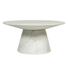 This Coffee Table in Blanco combines modern elegance with practical durability. Its white marble-inspired surface is achieved through a hydrographic water-dipped finish, creating a lightweight yet refined option for indoor or outdoor lounging spaces.