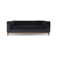 The Elliot Condo Sofa in Smoke Grey is a modern and elegant 3 seater that's perfect for smaller spaces. The deep channels give its sleek profile added dimension while the driftwood base and gold foot detail gives this sofa a stylish finish.