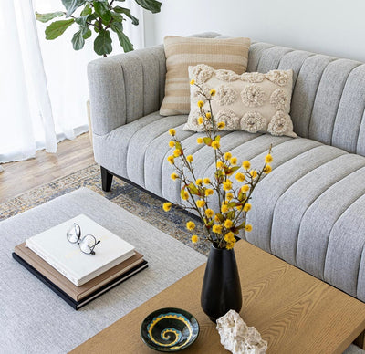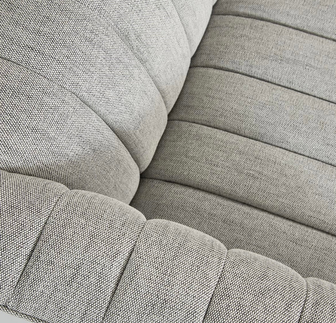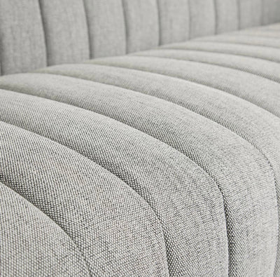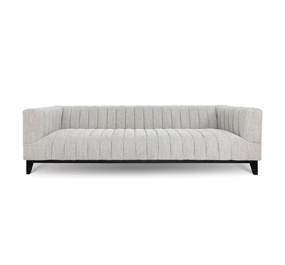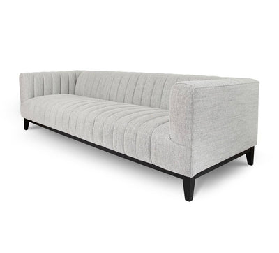 Upholstered in a luxurious salt and pepper performance-weave fabric, this sofa will have your guests swooning at your impeccable taste. But don't let its stunning appearance fool you - this sofa is built to last. Its high-performance fabric is both durable and easy to maintain, making it the perfect choice for busy households. Plus, with its unique design and deep channels, this chic three-seater sofa effortlessly blends into any modern or traditional setting.