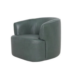 Upholstered in full-grain leather with a choice of deep moss or antique sienna, this swivel chair balances bold color with comfort. The 360° base allows smooth rotation, making it adaptable across seating layouts.