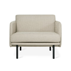 Inspired by elements of classic Scandinavian design, the Foundry Chair offers ample sophistication as a standalone piece, showcasing striking lines, an extra slender tightback frame and a seat cushion that seems to float above elevated, cylindrical steel legs.