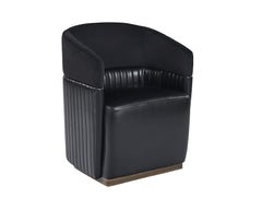 Guests will be intrigued by the unique design details found on this wheeled chair. Designed with contemporary styling, this chair features a channel tufted seatback in abbington black fabric and cantina black bonded leather with a brass frame.