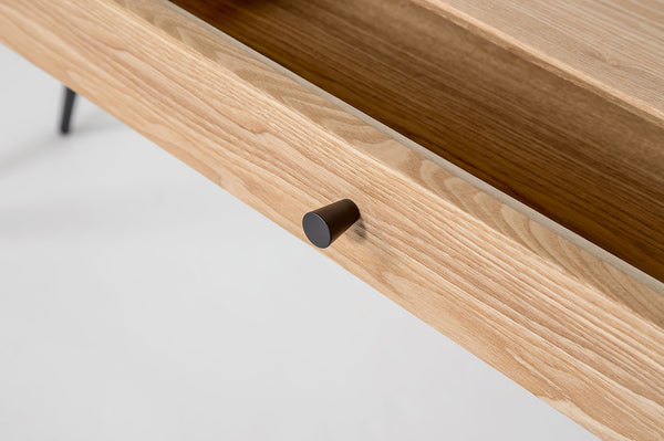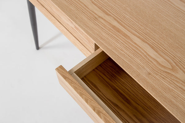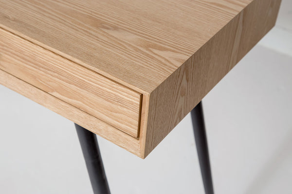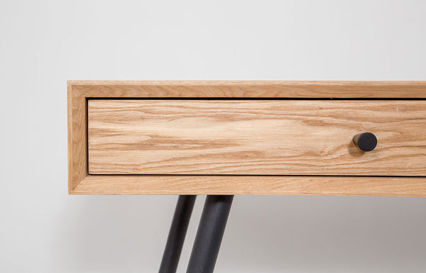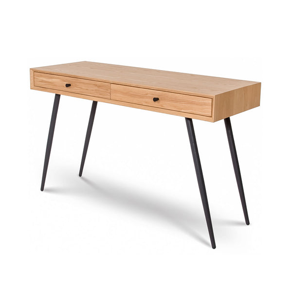 Designed for smaller spaces, Grace has ample room for laptops, lamps, coffee and whatever snacks you need to get through your day. This perfect desk is designed with a gorgeous natural wood finish and slender black metal legs. Two wide drawers are a great size for stashing away all that paperwork you’ll get to later.