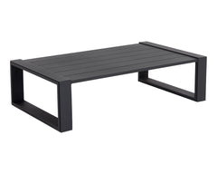Functional and stylish, this modern coffee table is made to last nature's elements. Crafted from powder coated charcoal aluminum.