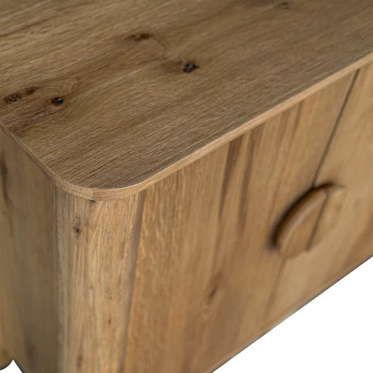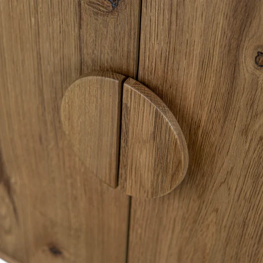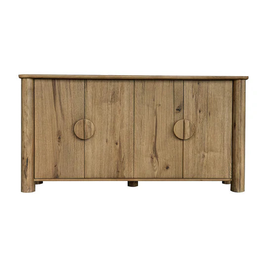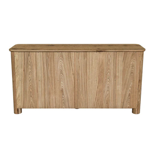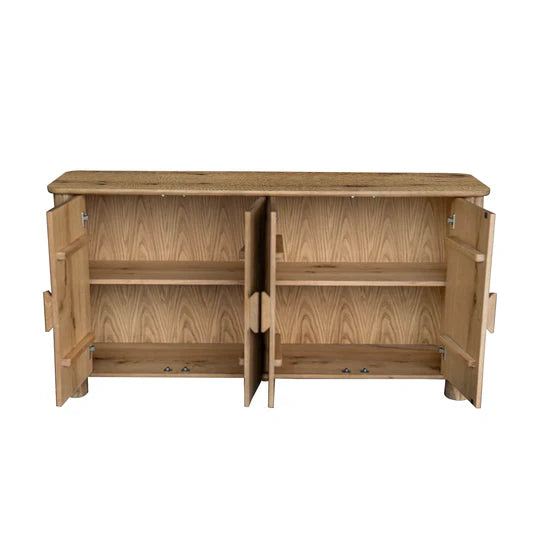 Featuring clean curves and a signature cracked oak pattern, this sideboard blends refined utility with visual depth. The four-door design conceals generous interior storage for modern living.