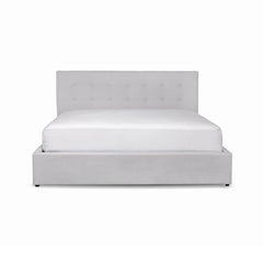 - Bring on the glam. The fashionable June bed takes centre stage in the bedroom and is absolutely tuft to beat! Upholstered in a 100% polyester light horizon grey fabric with impeccable grid-tufting, June’s low profile casts a classic silhouette and pairs beautifully with mid-century dressers and nightstands. Low profile, perfect for condo living.
