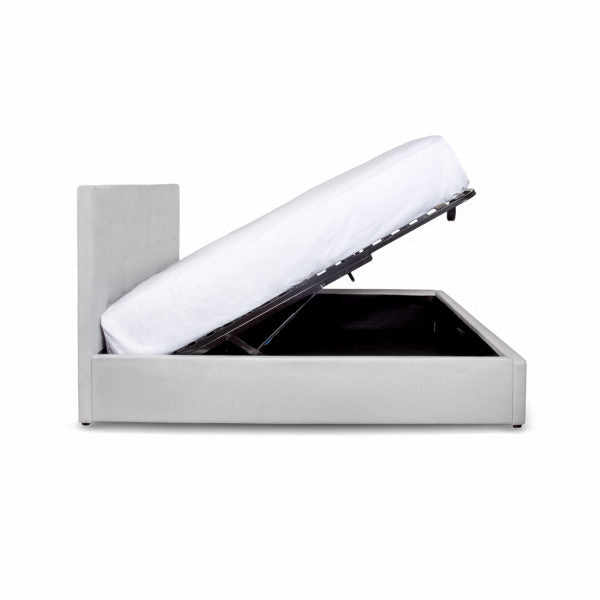• Bring on the glam. The fashionable June bed takes centre stage in the bedroom and is absolutely tuft to beat! Upholstered in a 100% polyester light horizon grey fabric with impeccable grid-tufting, June’s low profile casts a classic silhouette and pairs beautifully with mid-century dressers and nightstands. Low profile, perfect for condo living.