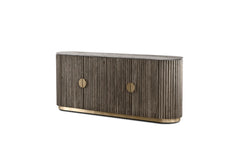 Introducing the Koii Collection, where elegance meets modern design. With its stunning silver-grey travertine marble top, this sideboard effortlessly enhances any space. Beautifully complemented by its fluted body and finished in an oiled ebony ash, Its rounded edges add a touch of softness, inviting warmth and intimacy to your gatherings.