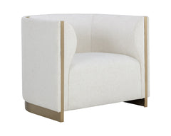 The Larron Armchair balances mixed materials to bring this contemporary design to life. Expertly upholstered in rhea light barley performance fabric or a two-tone combination of abbington black and hobbes night fabrics for a soft touch. Gold stainless steel metal inlay and padded curves accentuate the chair's curved silhouette.